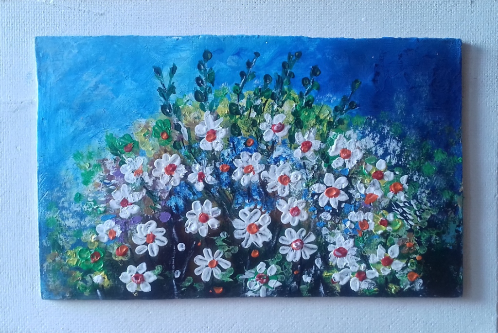 Virágok kék háttérrel.