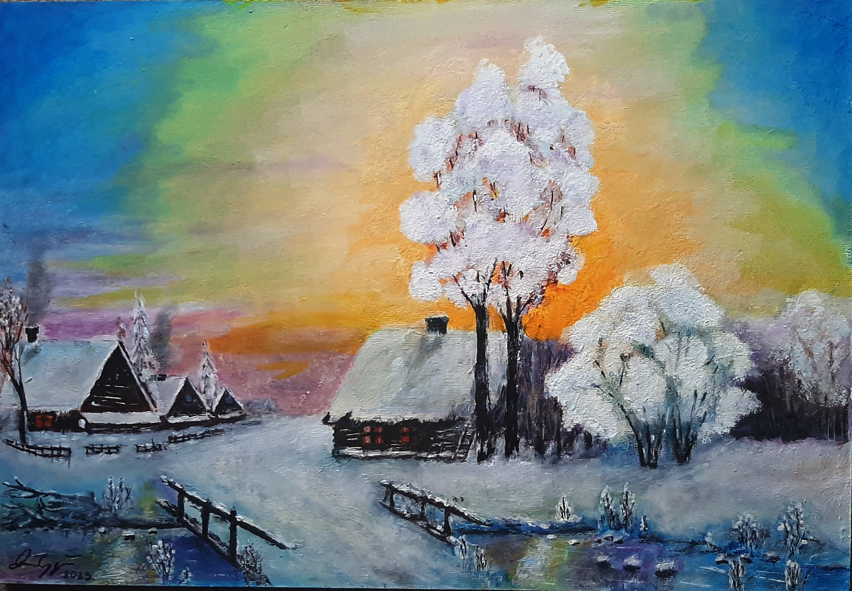 Téli táj.78x48 cm. Magányos pad.