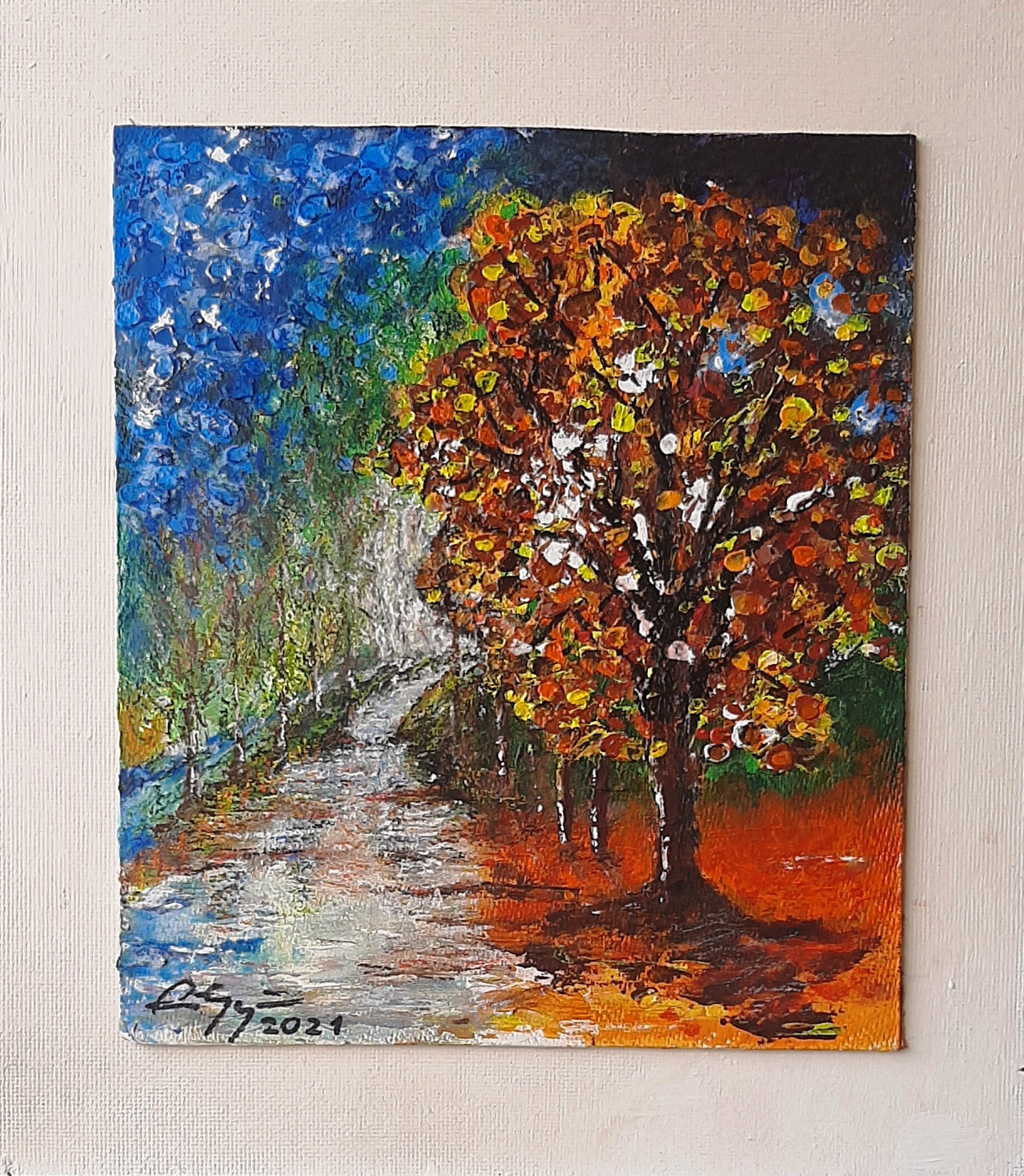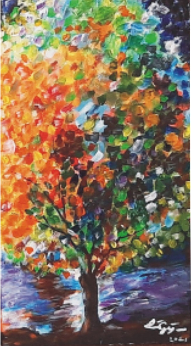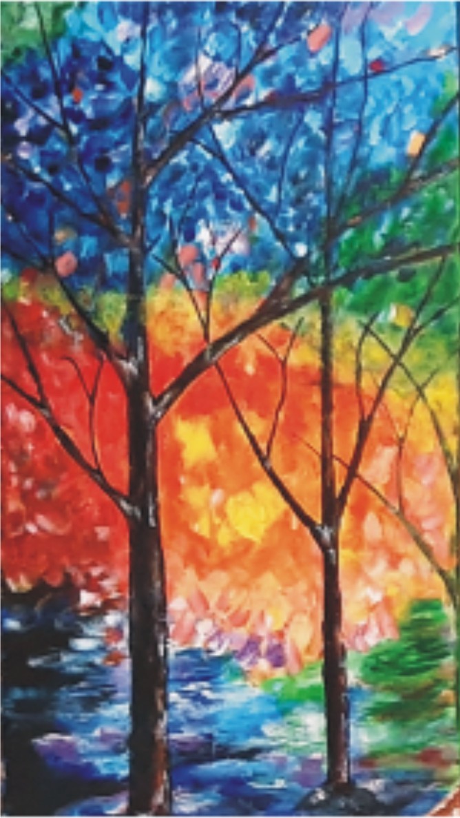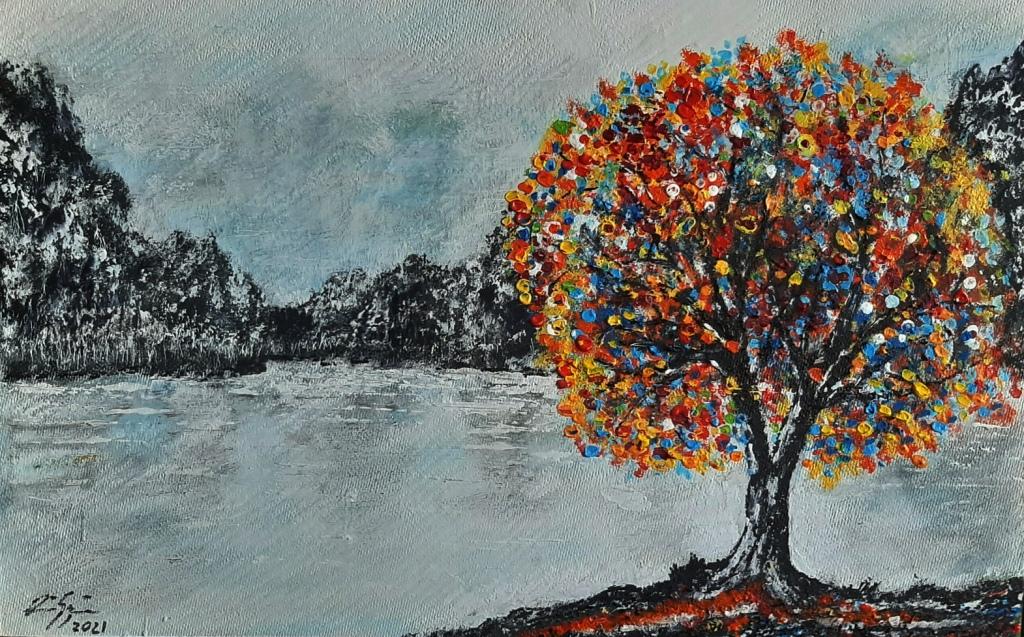 Színes fa a parton. 2021 Nőnap rdős táj